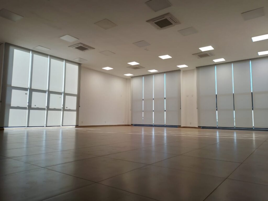 Persiana Rolo Screen na cor cinza instalada na Lar Unidade Bom Jesus.