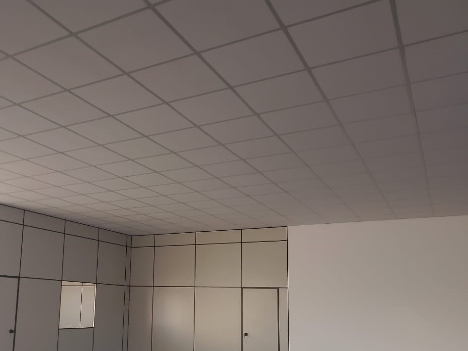 Parede Eucatex Naval com prefis branco e postas na cor branca.